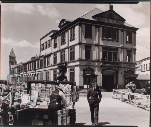 Department of Docks and Police Station, Pier A, North River, Manhattan By Berenice Abbott, from The New York Public Library Library Digital Collection (public domain)